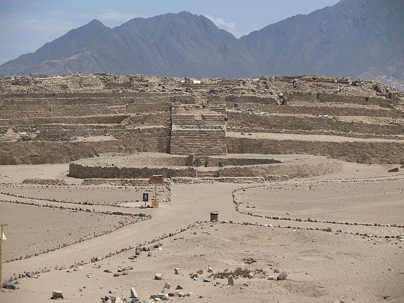 Hier sehen Sie Caral, das mittlerweile als eigenständige Kultur identifiziert wurde. Sie ist die älteste Kultur Lateinamerikas und damit auch älter als Inka, Chimu und Moche. Das ist aber nicht nur eine Stadt, sondern ein ganzes grünes Tal zwischen kahlen Bergen. zurück |