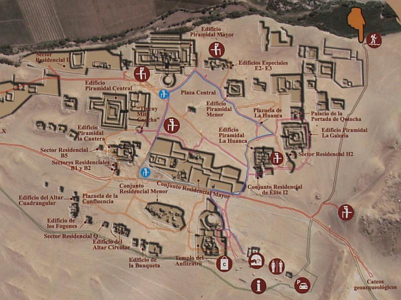 Hier sehen Sie eine Festung der Chimu gegen die Inkas, die es letztlich doch geschafft haben sich dieses Land anzueignen. Dazu leiteten Sie in der Hauptstadt Chanchan einfach den Fluß der durch die Oasenstadt floß um, worauf der Herrscher nach einiger Belagerungszeit aufgeben mußte. zurück |