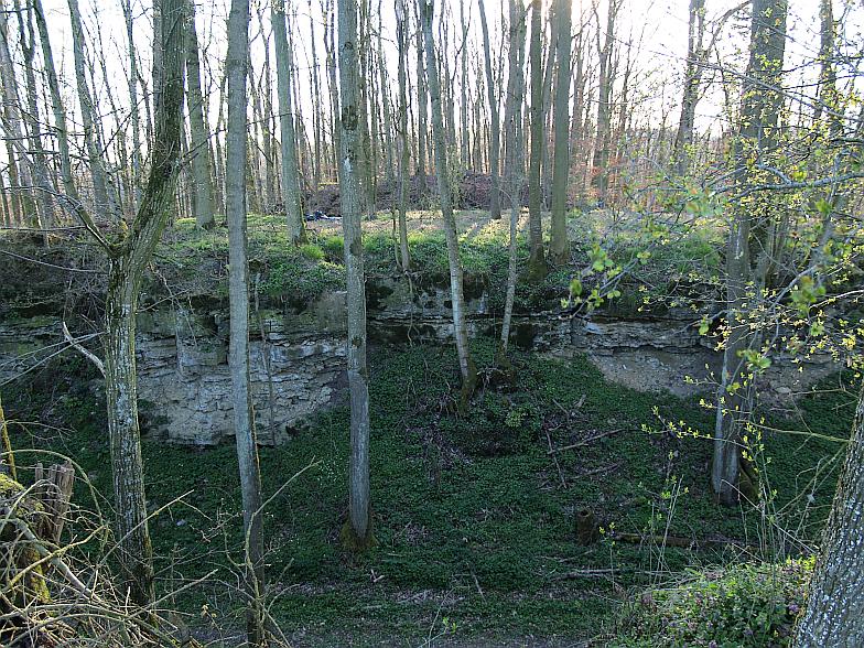 First castle ditch (moat) with sight to the main tower (donjon) |