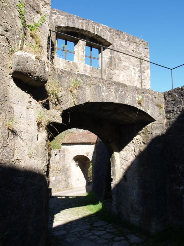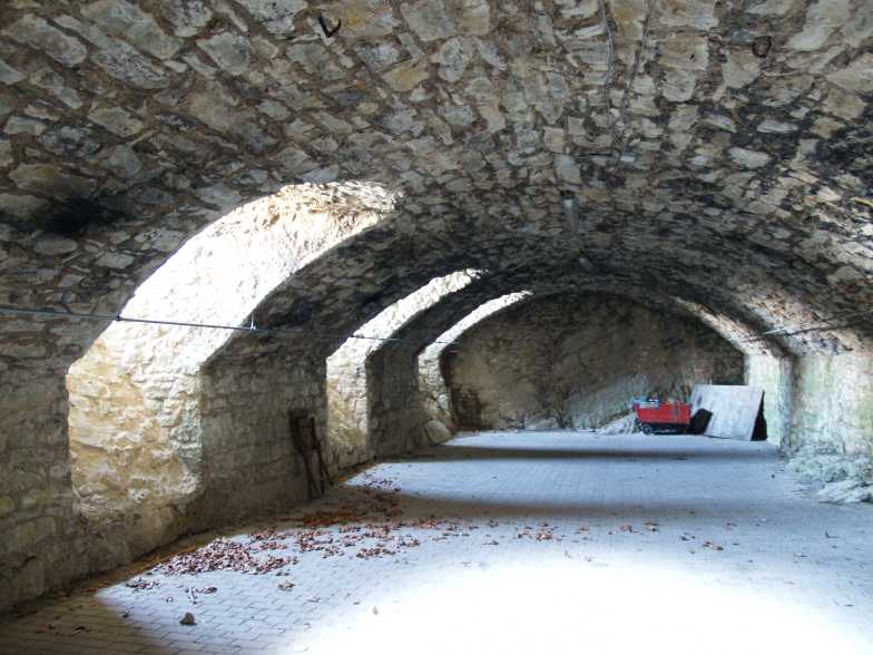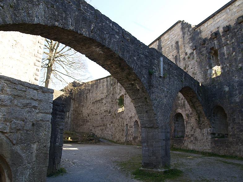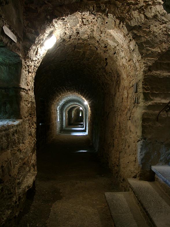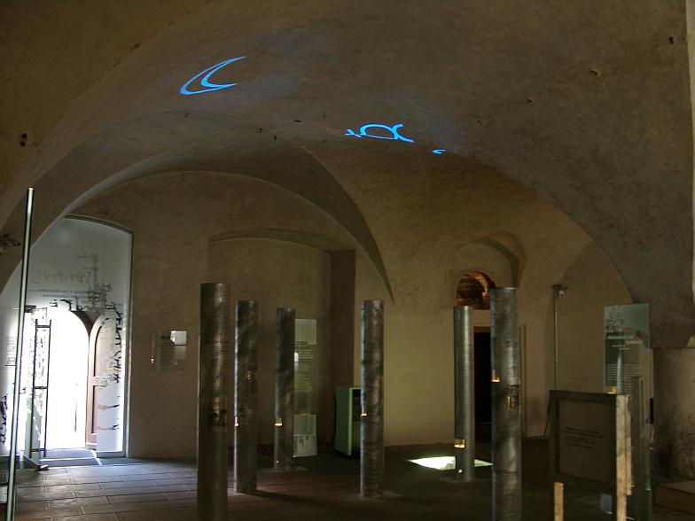 Hintergrund zeigt Kellerdecke von Burg Leofels |