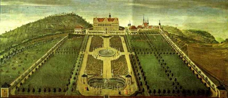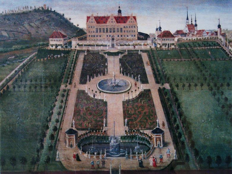 Complex with palace and gardenPainture of Schloss Weikersheim at 1710 from Christian Thalwitzer |