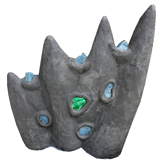 Auf den ersten Blick sieht man Skulpturen, bis man die Glasbrocken entdeckt. Diese sind zum einen Dekoration, aber zum anderen auch Lichtdurchlässe und sie machen aus den massiven Körper Lichtskulpturen.Einige Skulpturen sind von innen beleuchtet, wodurch die eleganten Farben der Glasbrocken zum Leuchten gebracht werden. Durch die außergewöhnliche Anordnung verbreiten diese in der Dunkelheit eine geheimnisvolle Atmosphäre. Als Lichtquelle dienen außentaugliche LEDs. Bei anderen Skulpturen werden die Lichteffekte durch eine äußere Lichtquelle erzeugt. Durch die Sonne oder einen hinter der Skulptur aufgestellten Strahler wird der massive Kunststein lichtdurchlässig.Für den Außenbereich entworfen und wetterfest, können die Lichtskulpturen aber auch zur Innendekoration verwendet werden. Der eingefärbte Kunststein passt sich wie natürlicher Stein mit der Zeit an die Umgebung an. ln geeigneter Anordnung können die Skulpturen auch als Sprudelstein oder zur Dekoration von Teichen eingesetzt werden. |