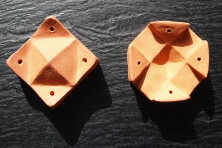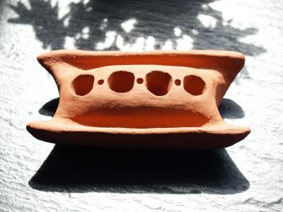 Es sind Gebrauchsgegenstände aus Terrakotta: Räucherstäbchenständer mit Auffangbecken für Asche, z.T. mit Vorratshaltern für Räucherstäbchen oder sie können zusätzlich als Kerzenhalter verwendet werden. |