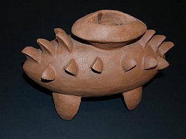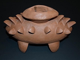 Es ist ein Gefäß in das man Räucherstäbchen hineinstellen kann, oder falls es innen glasiert wäre als Vase dienen könnte. Warum auch nicht einfach so hinstellen, das Formen- und Schattenspiel wirken lassen und darüber nachdenken welchen Zweck es nach 10000 Jahren in der Erde gehabt haben könnte? |